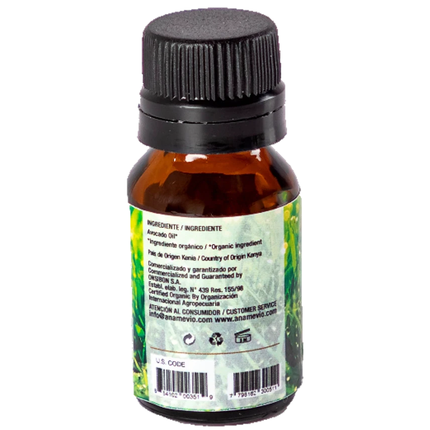 Planta: Persea Gratissima. Origen: Kenia. Contiene ácidos grasos insaturados, principalmente ácido oleico, aunque también linoleico y trazas de linolénico. Su alta presencia de vitamina E, y por tanto de efectos antioxidantes, previene el envejecimiento de la piel. Es altamente emoliente (alisa y suaviza la piel). Presenta una función de relipidación, es decir, de restauración de la función barrera de la piel.